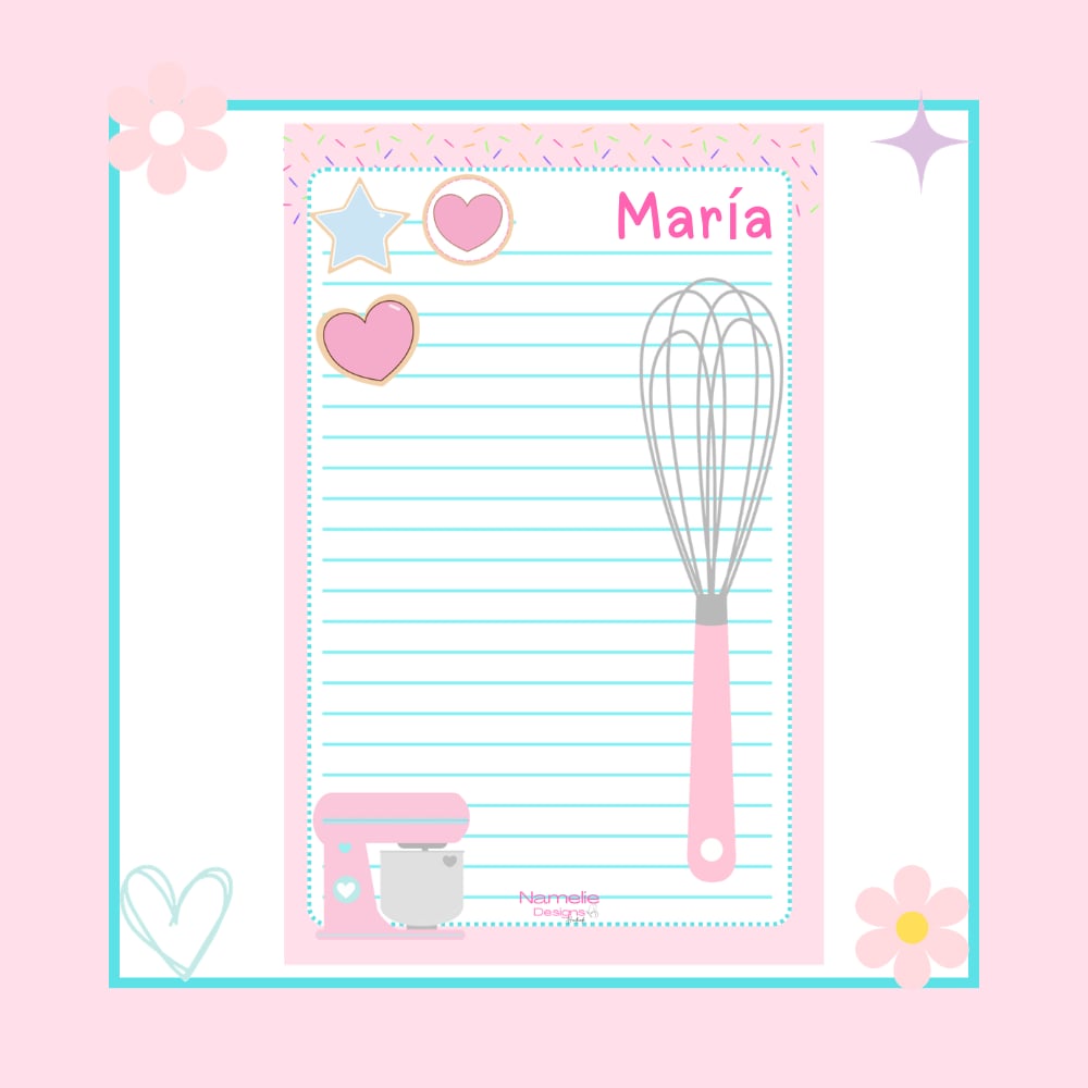 Notepad con diseño para los amantes de la repostería. Se personaliza con el nombre o apellido.Favor de dejar nombre que desea personalizar en el area de checkout